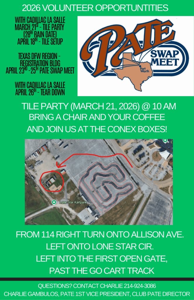 The AACA Texas DFW Region warmly invites you to join us along with the Cadillac La Salle Club to prepare the vendor site tiles for this years