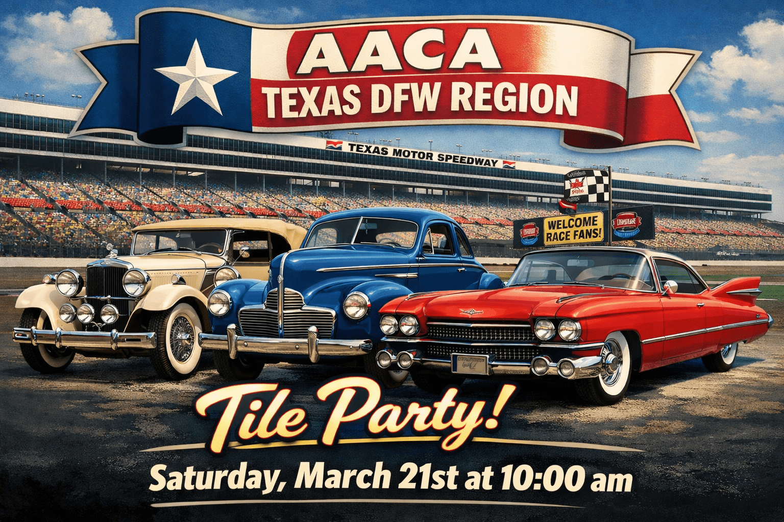 Pate Swap Meet – Tile Setout Workday Where: Texas Motor Speedway When: Saturday – 18th Time: 10am.