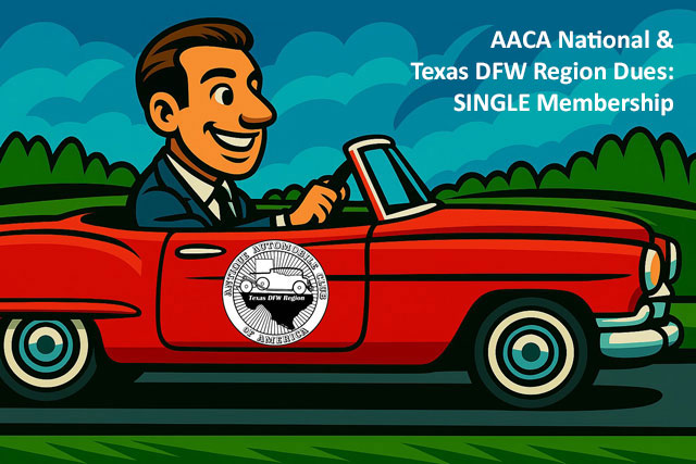 Membership to National AACA is mandatory to be a member of the Texas DFW Region.